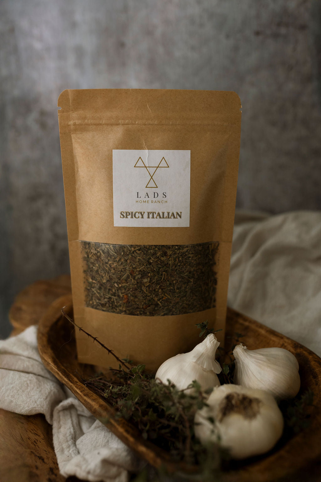 SPICY ITALIAN - Our take on the traditional Italian seasoning, just kicked up a notch! Try it on focaccia, meatballs, roasted vegetables, or soup! All of our spices blends are all natural & junk free!